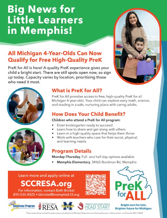 The St. Clair County RESA coordinates the consortium of Great Start Readiness Programs (GSRP) throughout the county. The school district does not discriminate on the basis of race, color, national origin, sex, disability, age, religion, height, weight, or marital status in its programs and activities. In addition, arrangements can be made to ensure that the lack of English language proficiency is not a barrier to admission or participation.